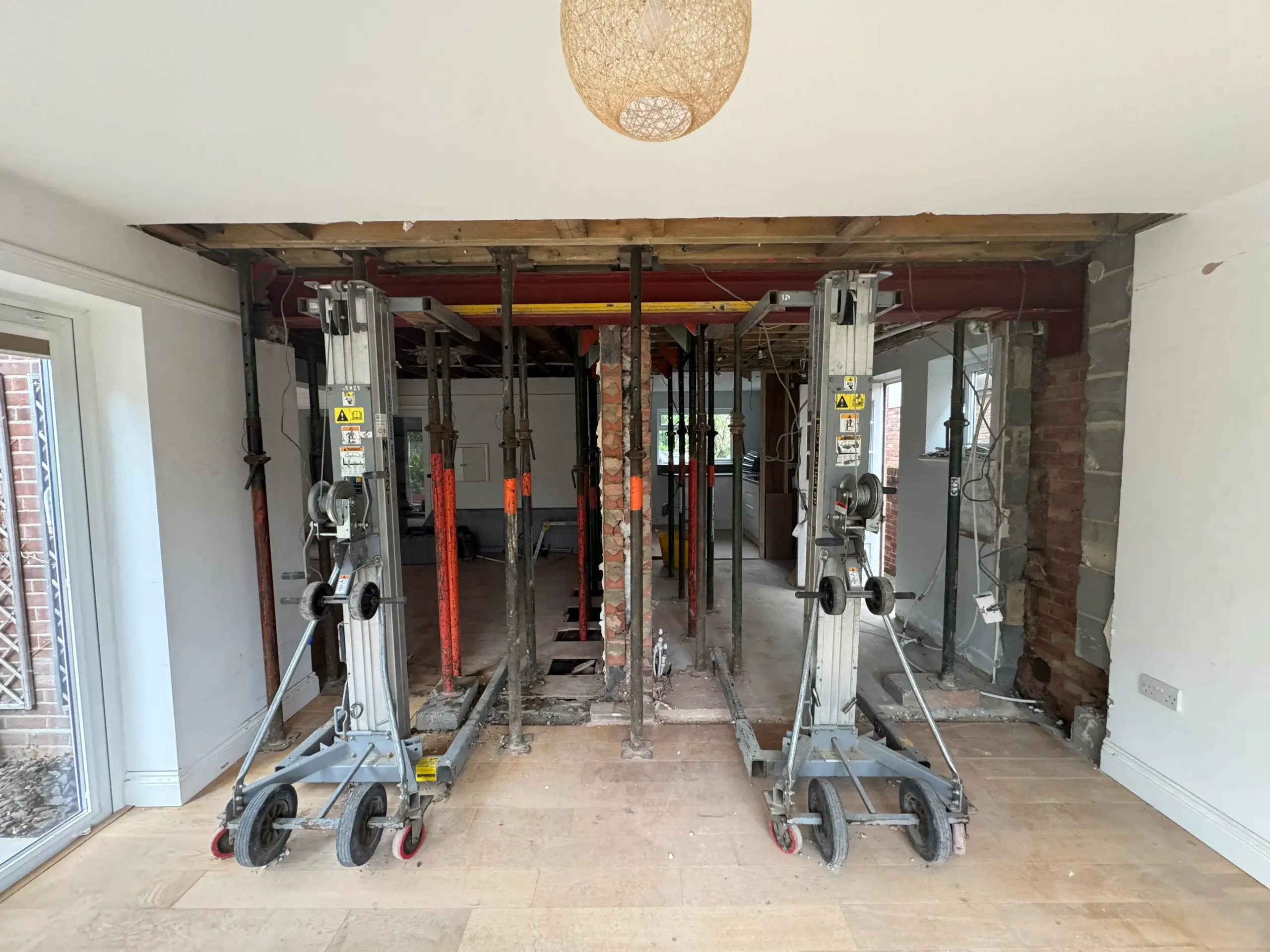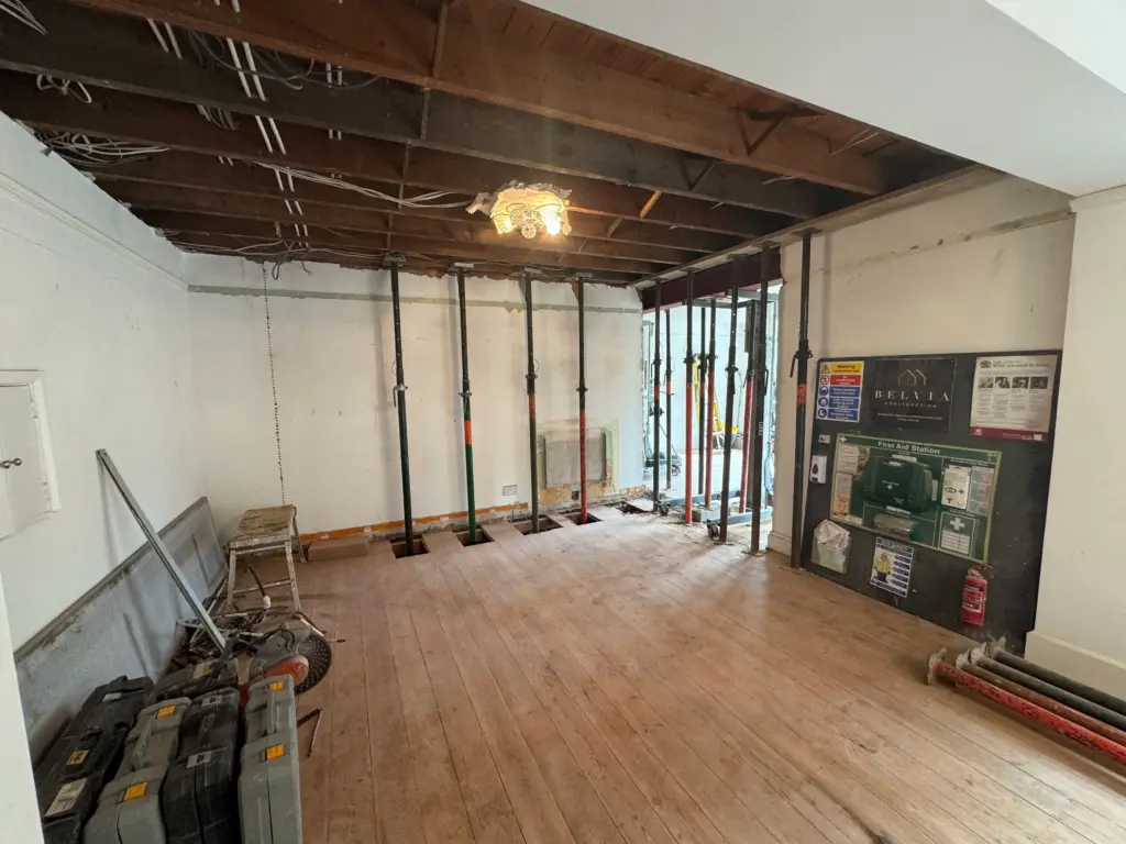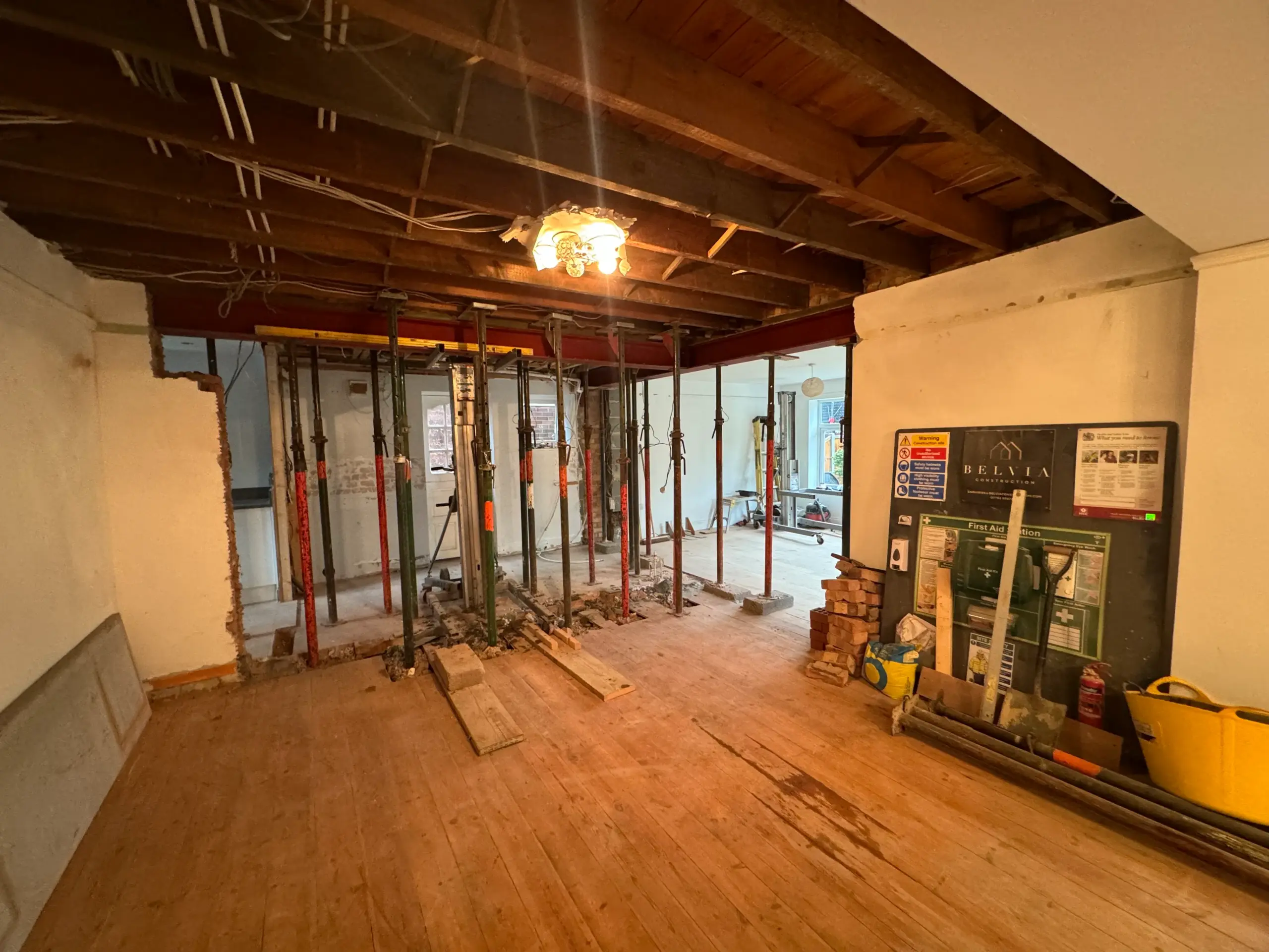 - Installed steel beams (RSJs) with padstones and posts where needed, then made good floors/ceilings.