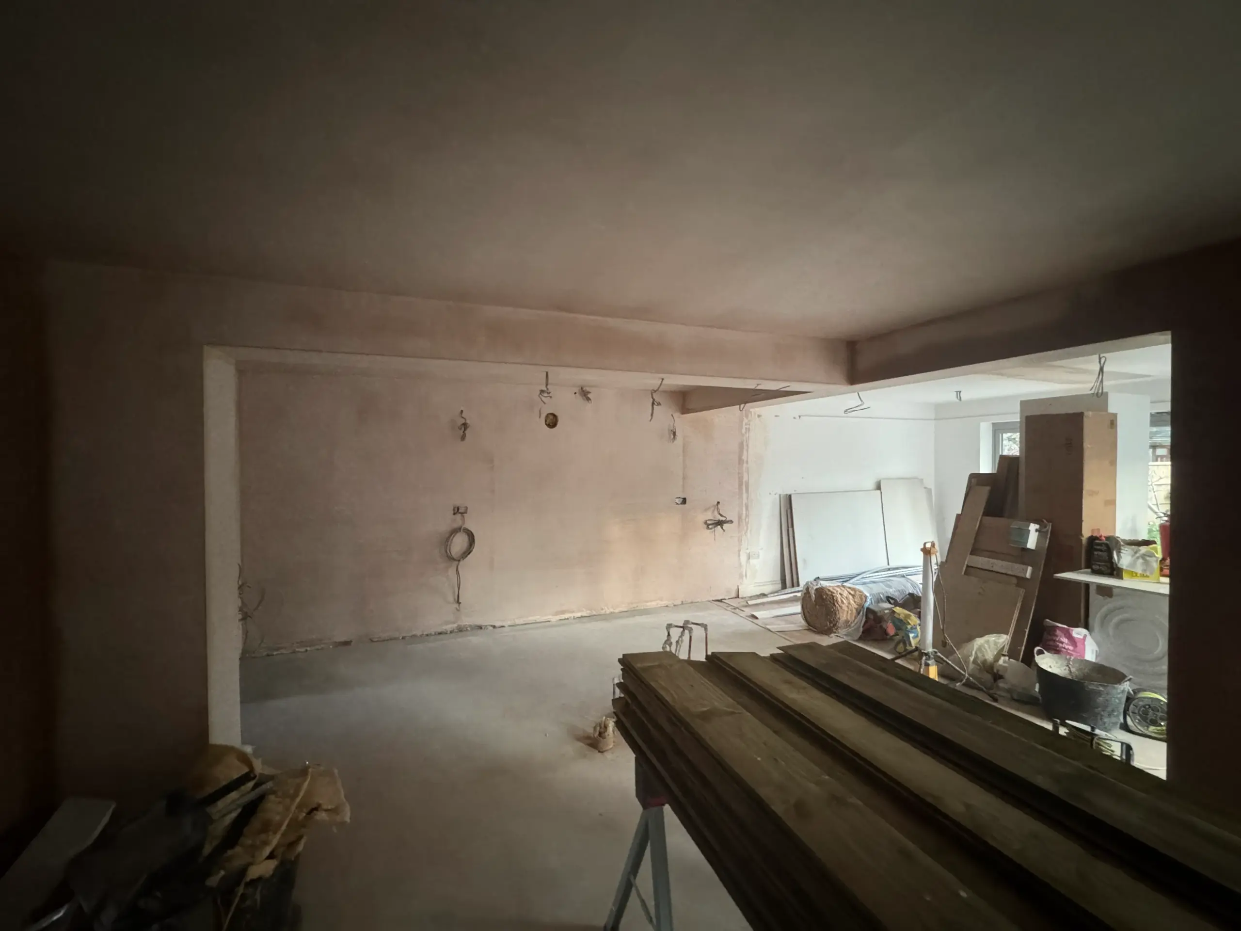 - Prepared the shell (straightened walls, levelled sub-floors) ready for a precision kitchen fit.