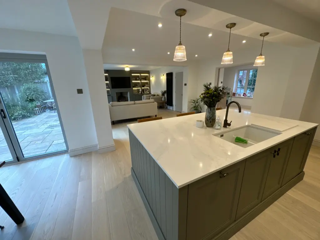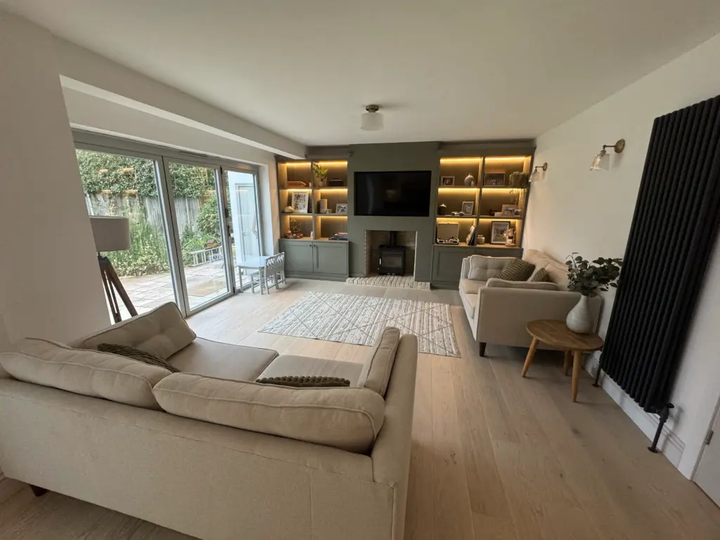 Following a recommendation, we surveyed the property and agreed a clear scope, programme and fixed price. We mapped out the sequence (demolition → steels → first-fix services → insulation & plaster → second-fix installations → decoration & flooring) to minimise disruption and keep the kitchen and wet-room installations running smoothly. Structural calculations informed the steel sizes for the load-bearing wall removals, and we scheduled trades to avoid downtime.