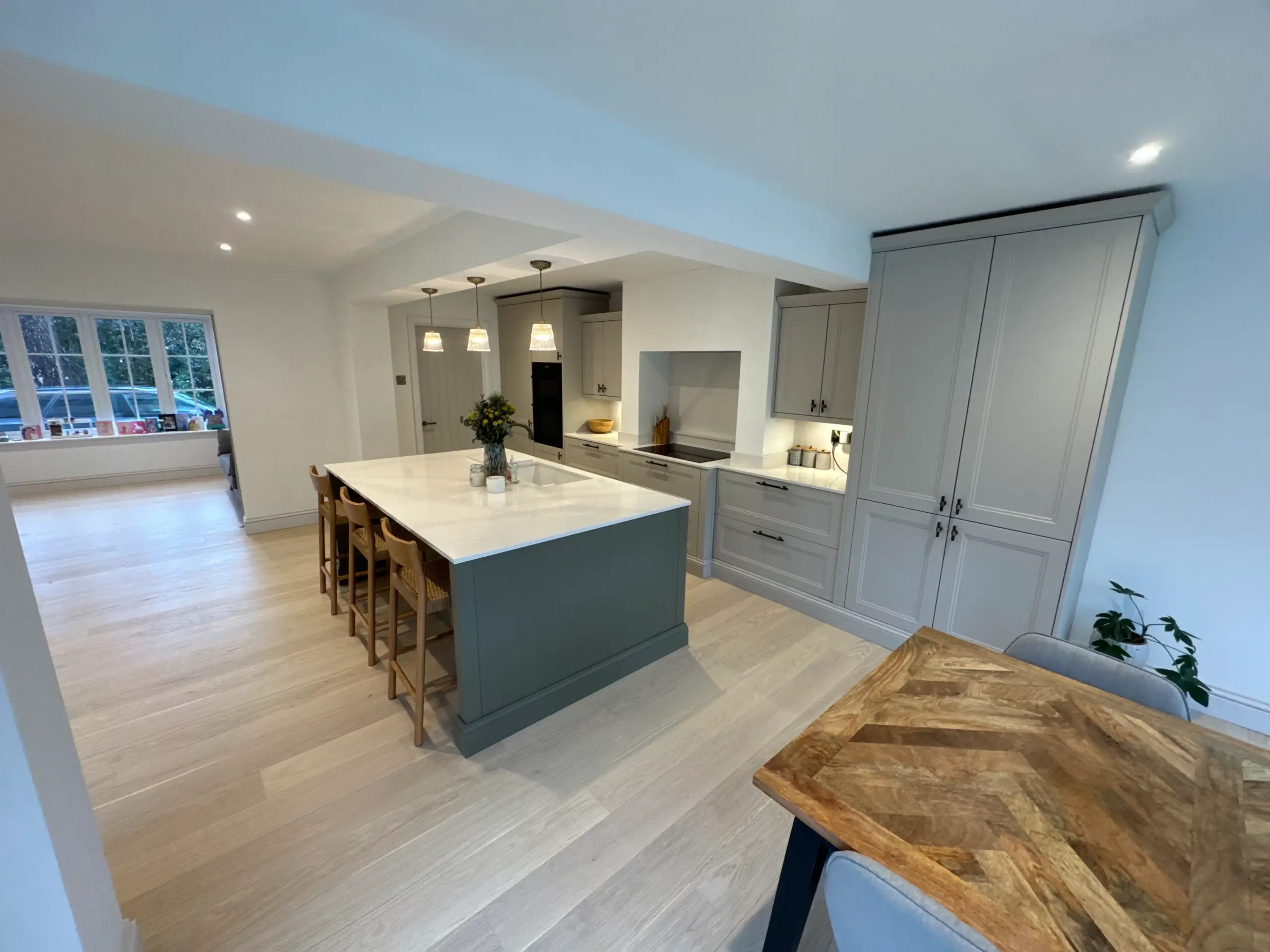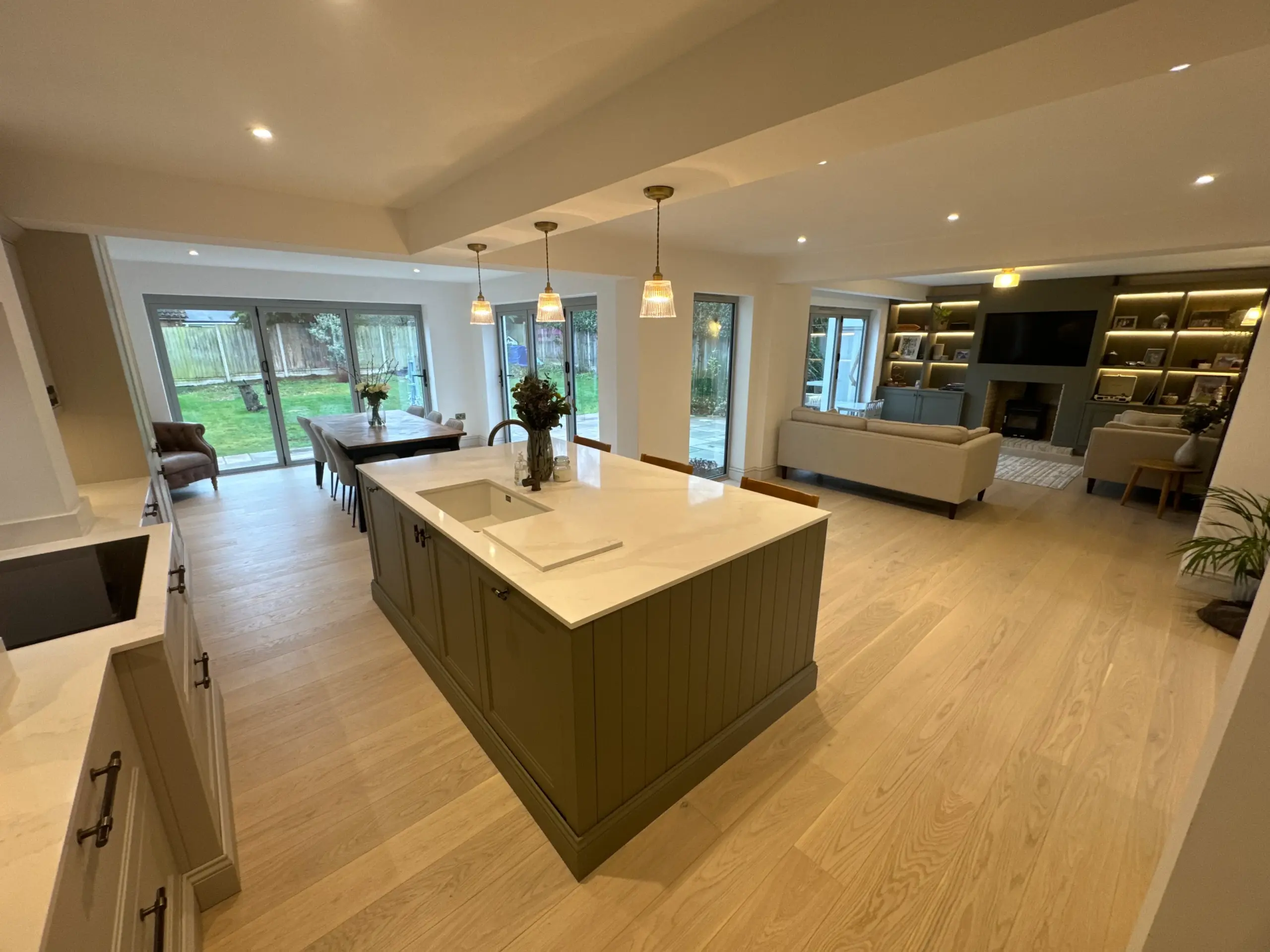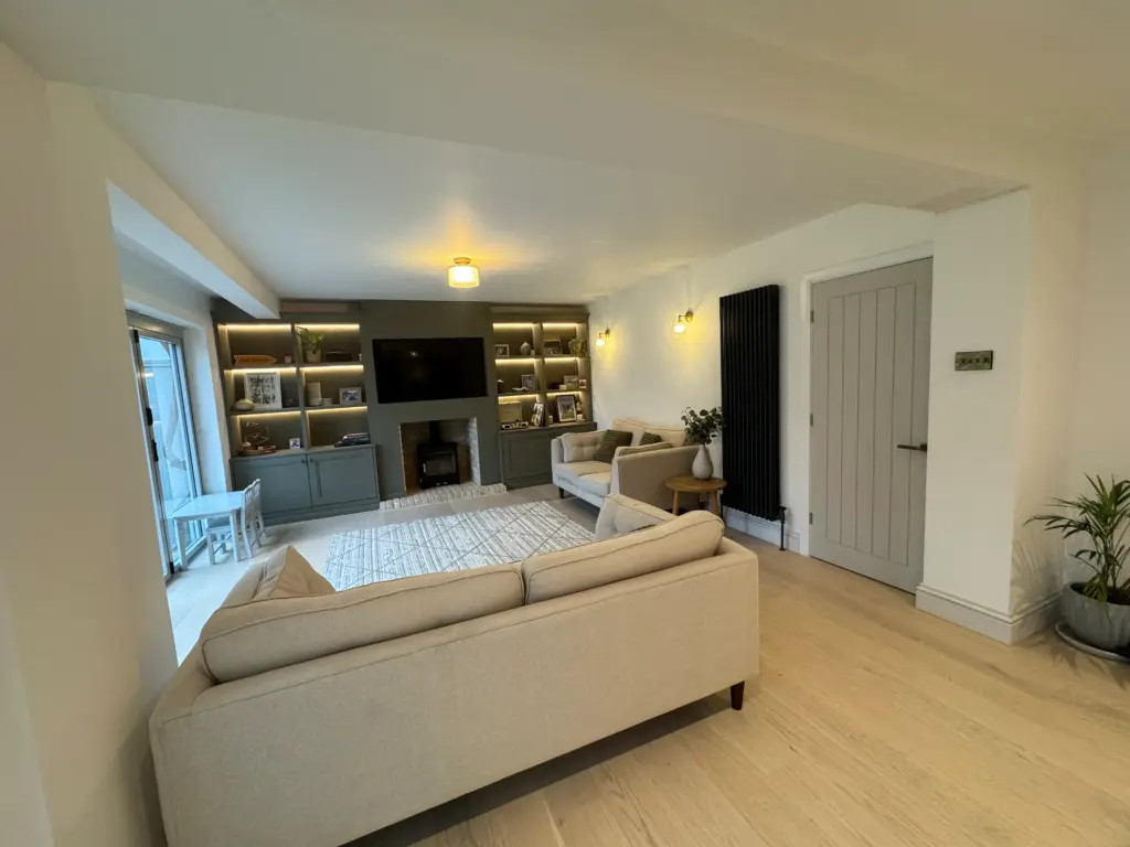 - Full ground-floor rewire, new consumer unit, circuits for appliances, LED downlights and feature lighting.